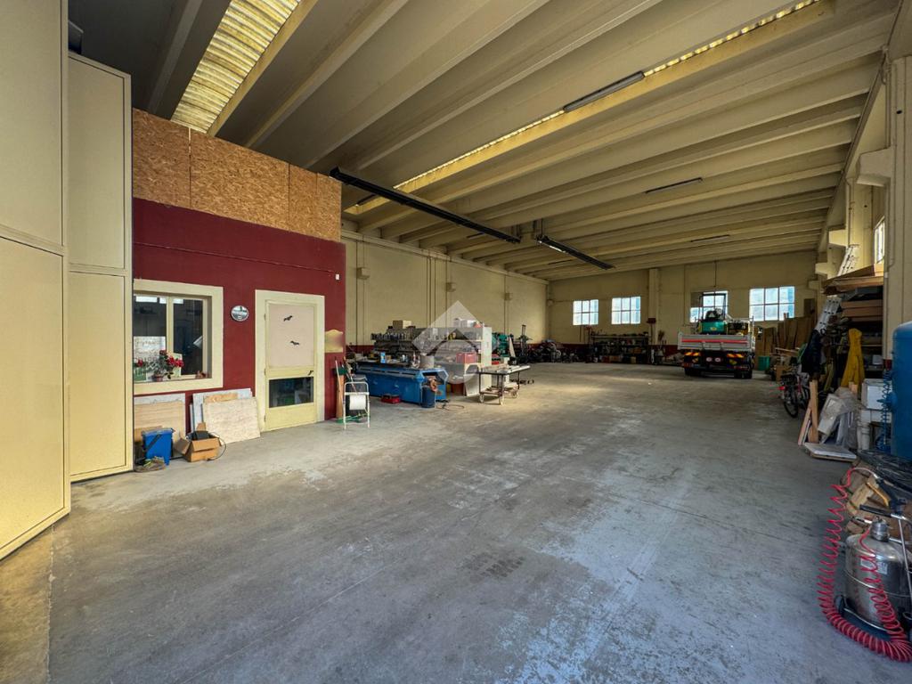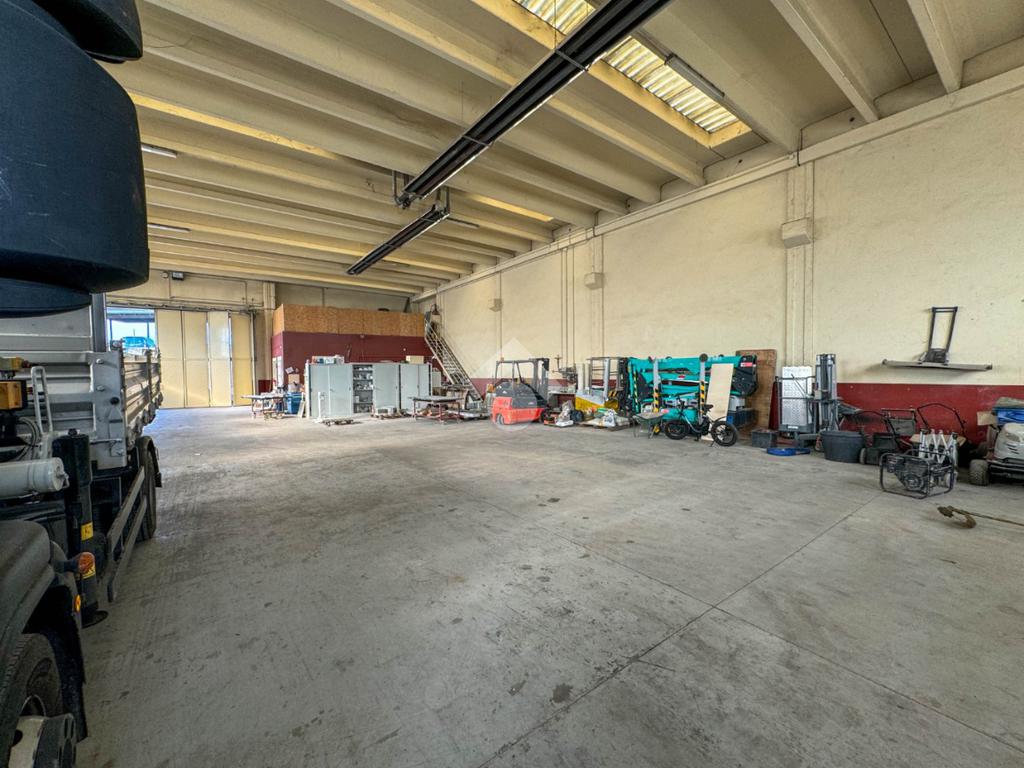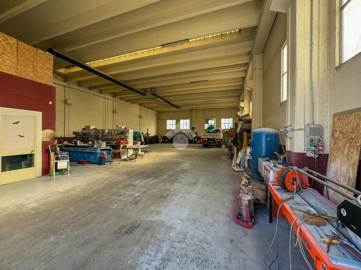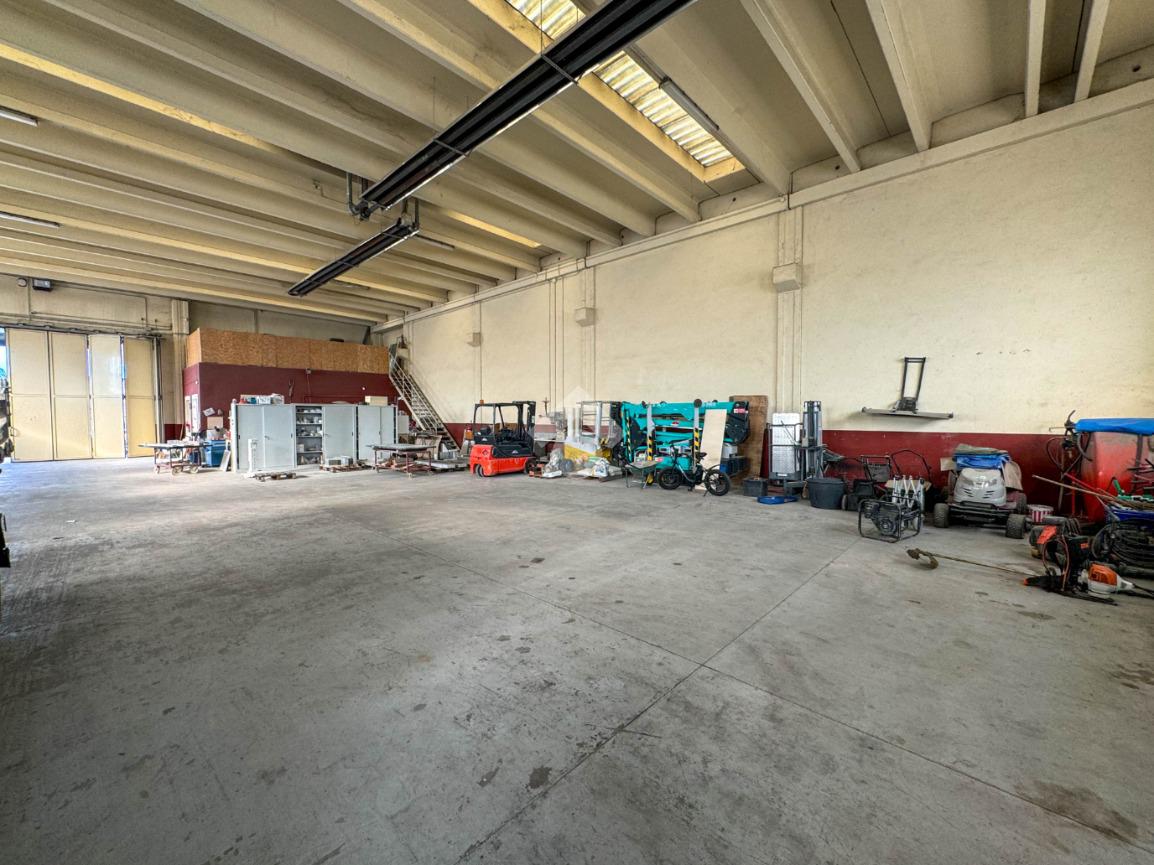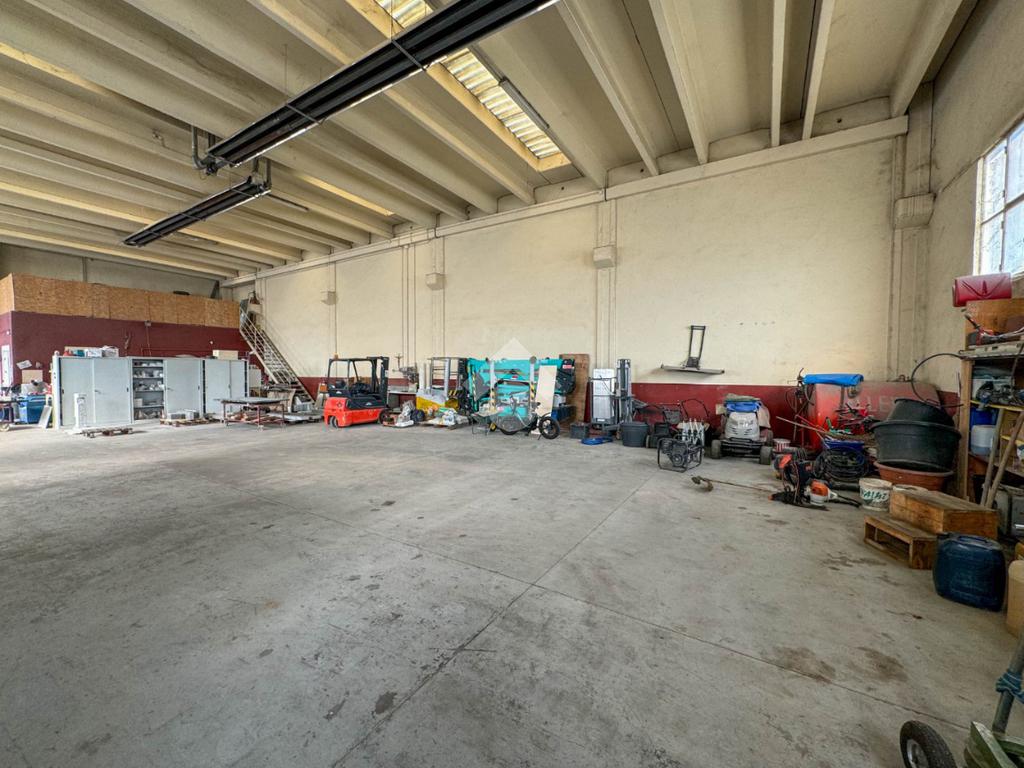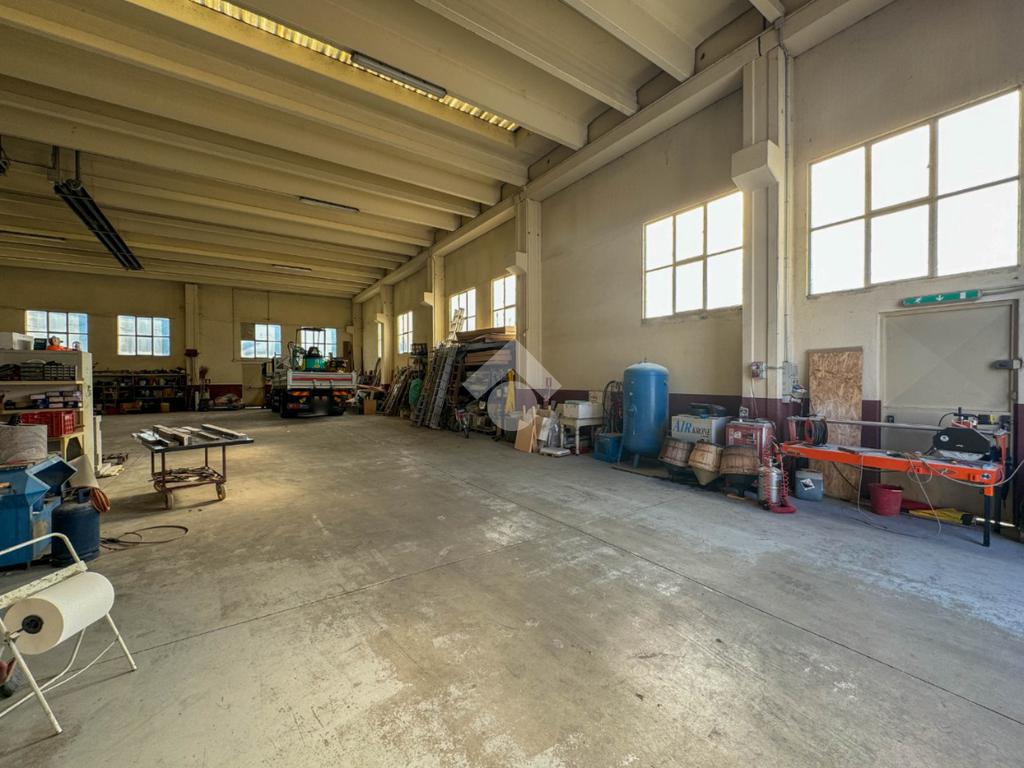 Il capannone che misura circa 500 metri quadrati ha un'altezza di 7 metri, un'altezza sottotrave di 6,60 metri e un portone d'accesso di 4,50 metri. La struttura presenta una sola campata, è recintata e attualmente presenta un servizio igienico con docce. Il capannone presenta l’impianto di riscaldamento, l’impianto elettrico, l’impianto d’allarme e l’impianto d’illuminazione. La proprietà dispone di un cancello largo 5 metri e delle uscite d’emergenza.