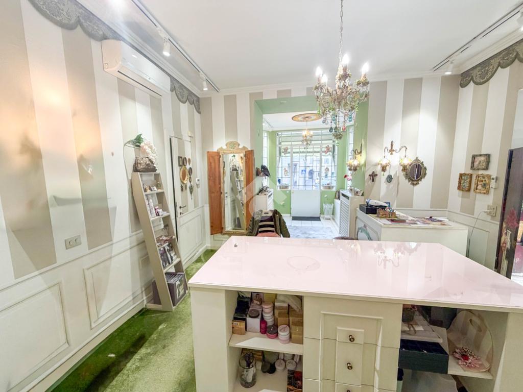 Il negozio misura circa 60 metri quadrati, attualmente è suddiviso in due locali e presenta un servizio igienico non a norma disabili. La struttura ha un'altezza di circa 3,0 metri, ed è caratterizzata da una pavimentazione in piastrelle e una parte in moquette. L'immobile, controsoffittato, presenta l'impianto di riscaldamento e condizionamento, l’impianto elettrico e l’impianto d’illuminazione. La struttura è molto luminosa grazie alla presenza di cinque ampie vetrine e alla sua posizione ad angolo.