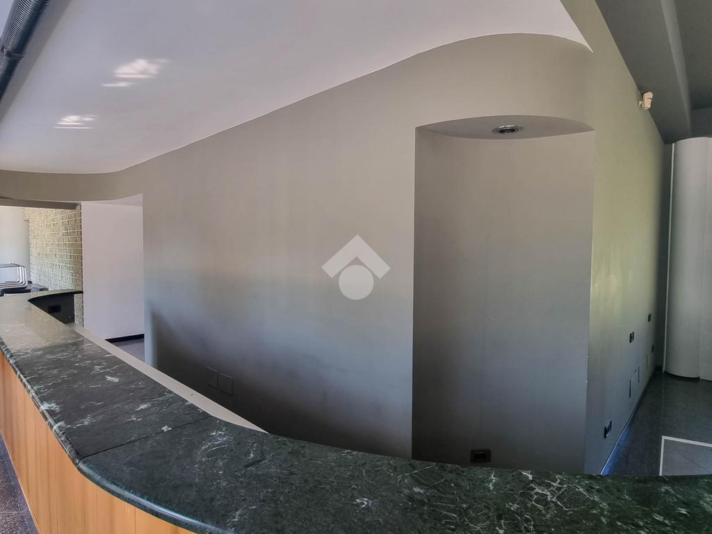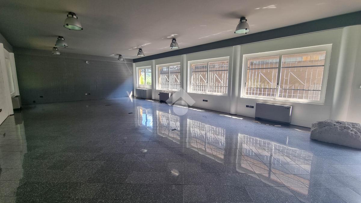 L'ufficio misura circa 300 metri quadrati, attualmente è suddiviso in quattro locali con due servizi igienici. L'immobile presenta gli impianti di riscaldamento e di condizionamento, l'impianto elettrico, di illuminazione e la predisposizione per l'impianto d'allarme da revisionare. La struttura ha un'altezza di circa 3,20 metri, è caratterizzata da una pavimentazione con piastrelle, risulta molto luminosa grazie alla presenza di ampie finestre e possiede la portineria e l'uscita di emergenza.