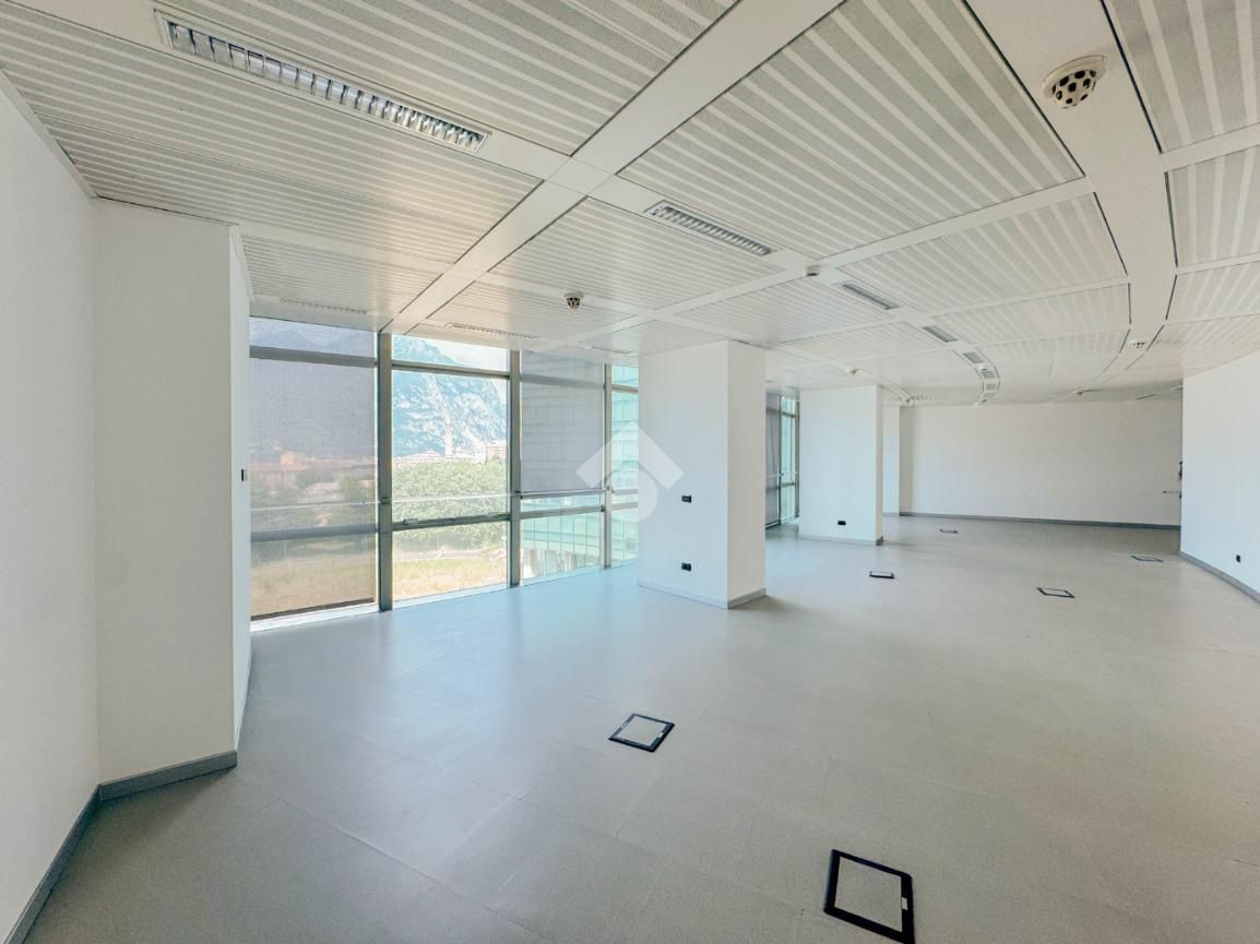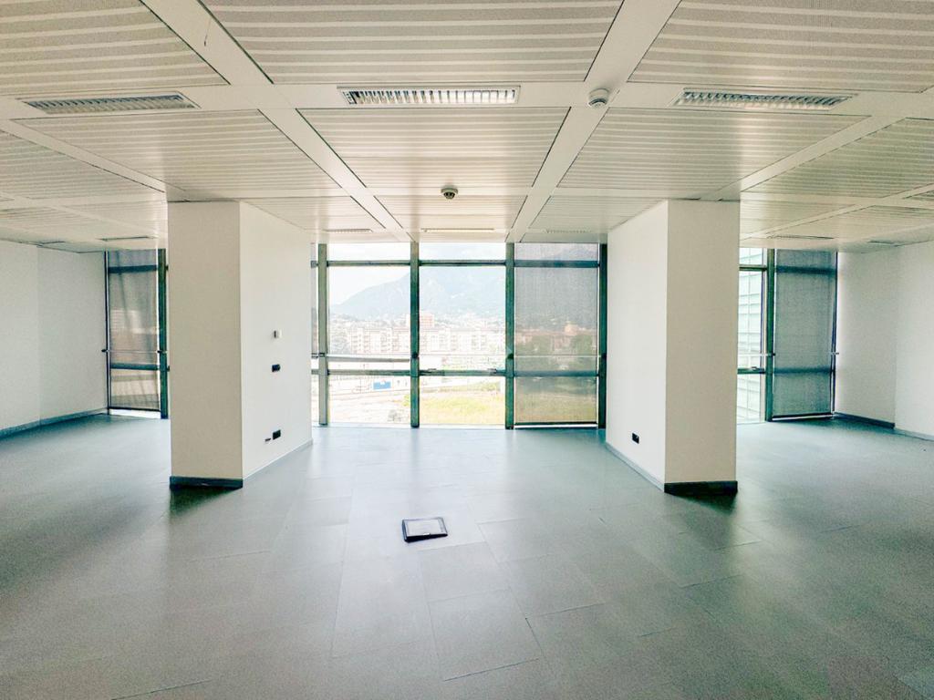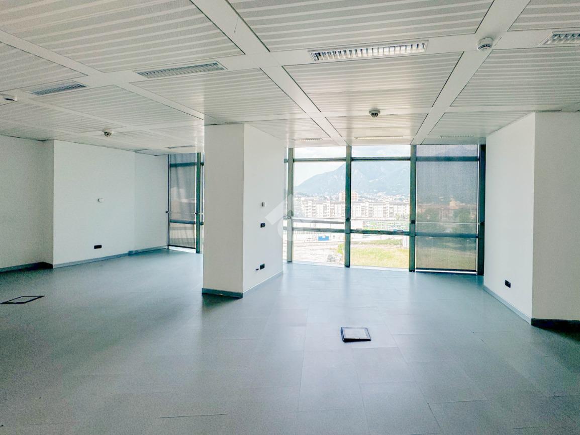 L’ufficio misura circa 120 metri quadri e si sviluppa in unico locale. Presenta un servizio igienico in comune, a norma disabili. La struttura ha un’altezza di circa 2,80 metri, è caratterizzato da una pavimentazione flottante e controsoffitto. L'immobile presenta l'impianto di riscaldamento e condizionamento, l’impianto elettrico e d'illuminazione e l'impianto d'allarme. La struttura, cablata, possiede le luci d’emergenza, internet a banda larga e ha la porta blindata.