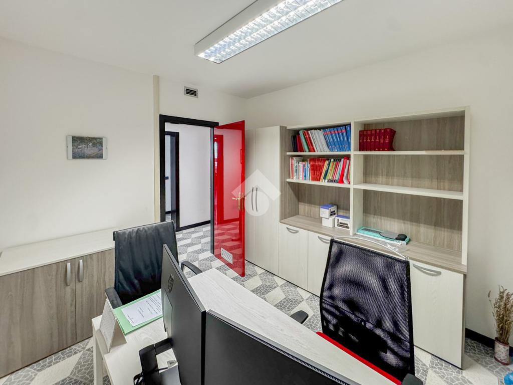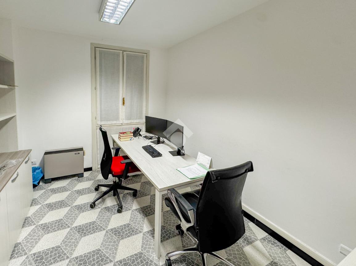 L'ufficio misura circa 115 metri quadrati, si suddivide in quattro locali e presenta un servizio igienico non a norma disabili. La struttura ha un'altezza di circa 2,70 metri ed è caratterizzata da una pavimentazione in piastrelle. La struttura presenta l'impianto di riscaldamento e di condizionamento centralizzati, l’impianto elettrico, d'illuminazione e dispone delle luci di emergenza. L’immobile è cablato.