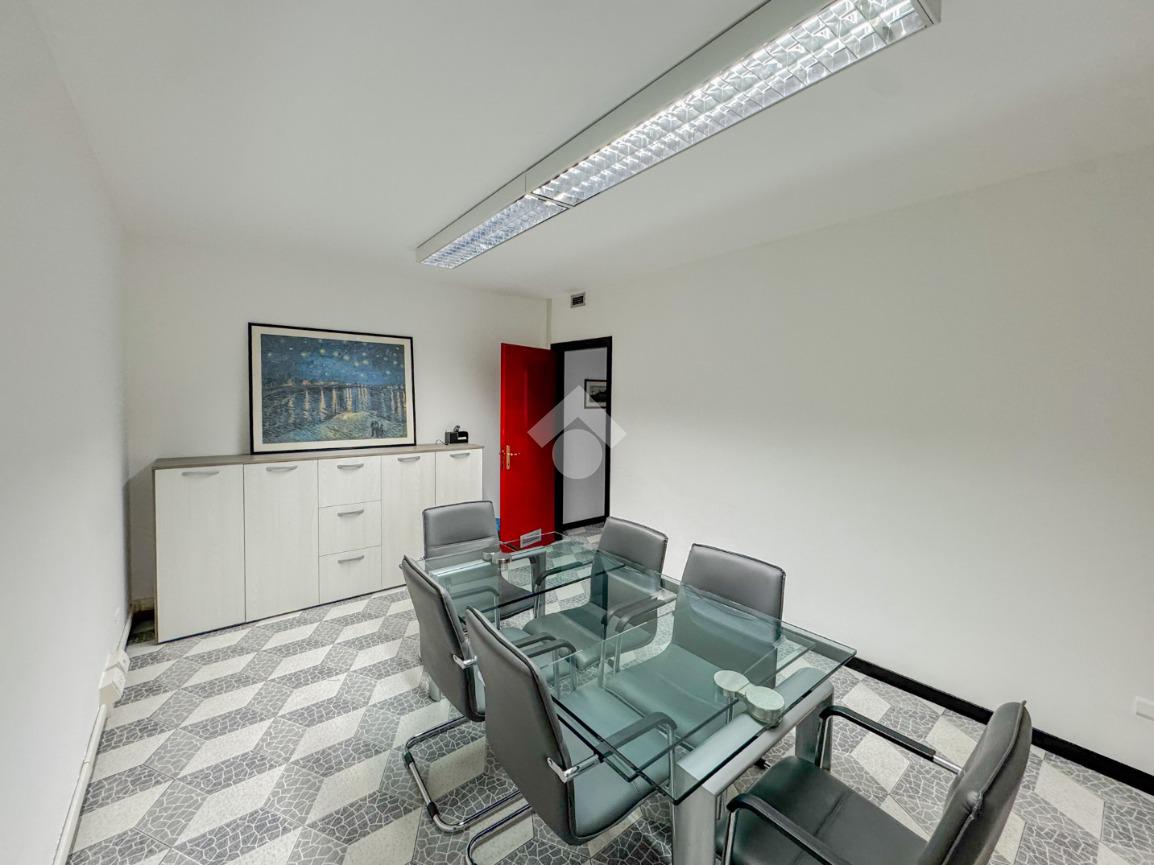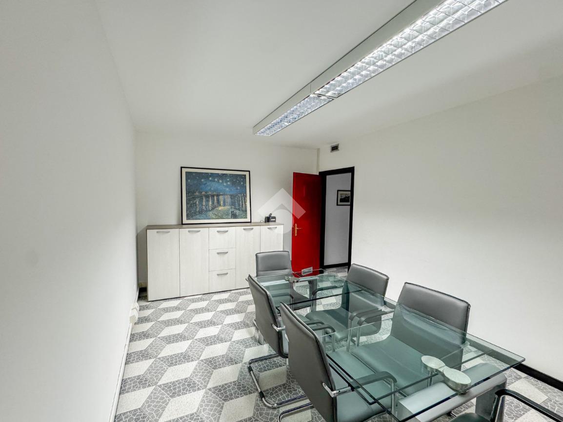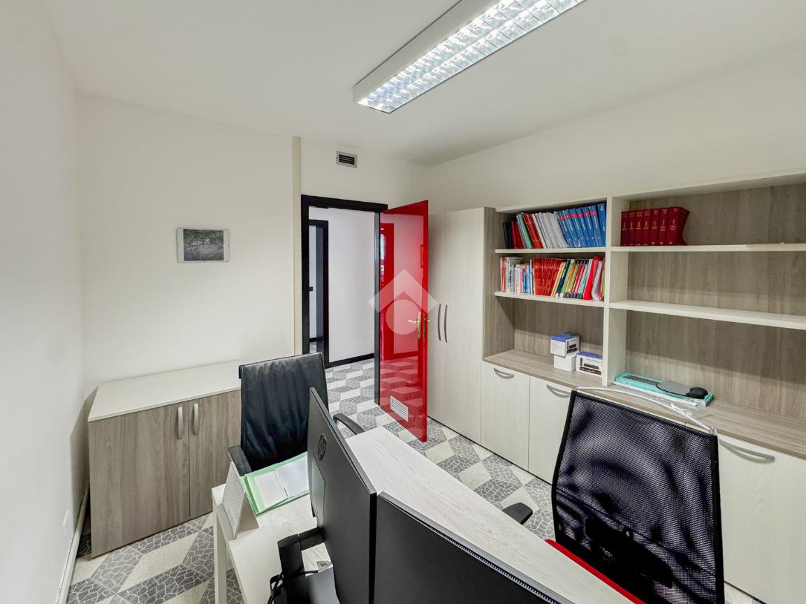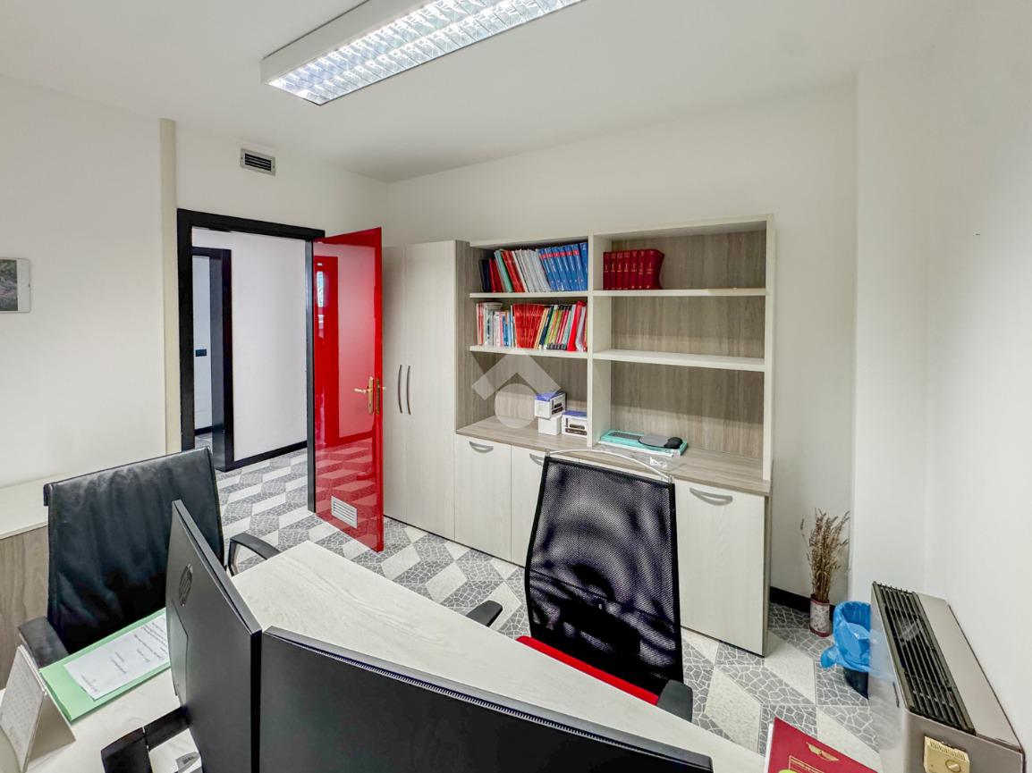 L'ufficio misura circa 115 metri quadrati, si suddivide in quattro locali e presenta un servizio igienico non a norma disabili. La struttura ha un'altezza di circa 2,70 metri ed è caratterizzata da una pavimentazione in piastrelle. La struttura presenta l'impianto di riscaldamento e di condizionamento centralizzati, l’impianto elettrico, d'illuminazione e dispone delle luci di emergenza. L’immobile è cablato.