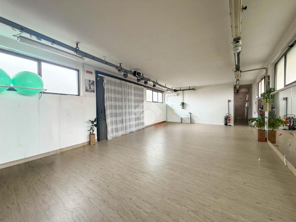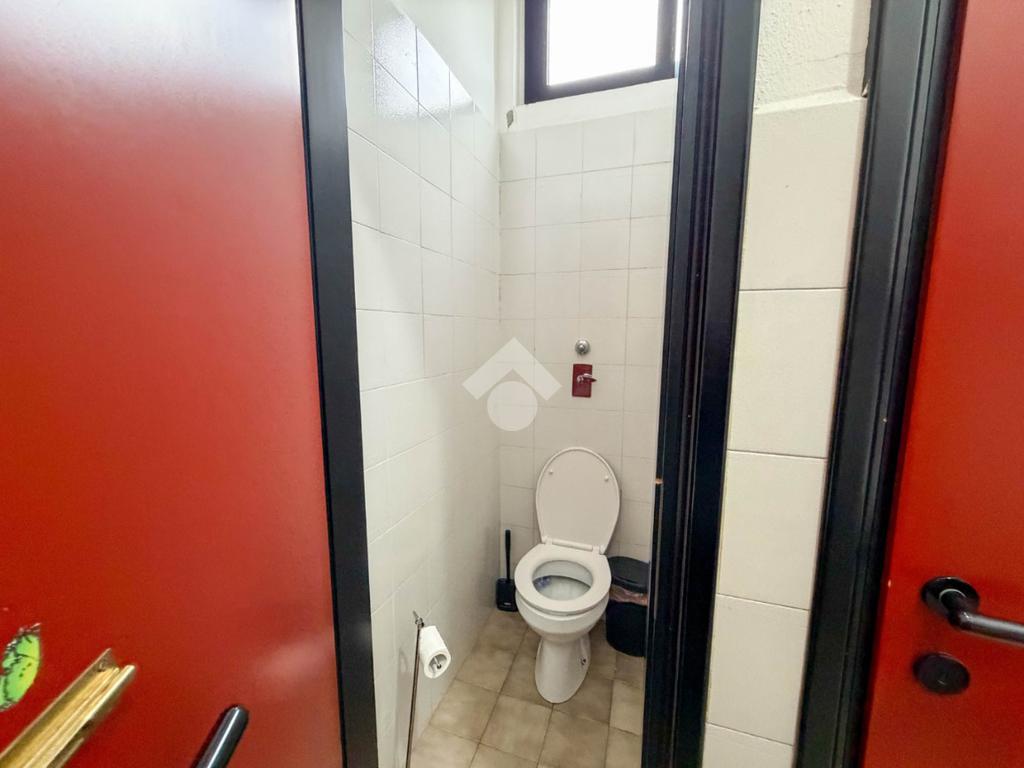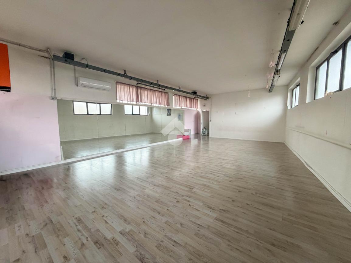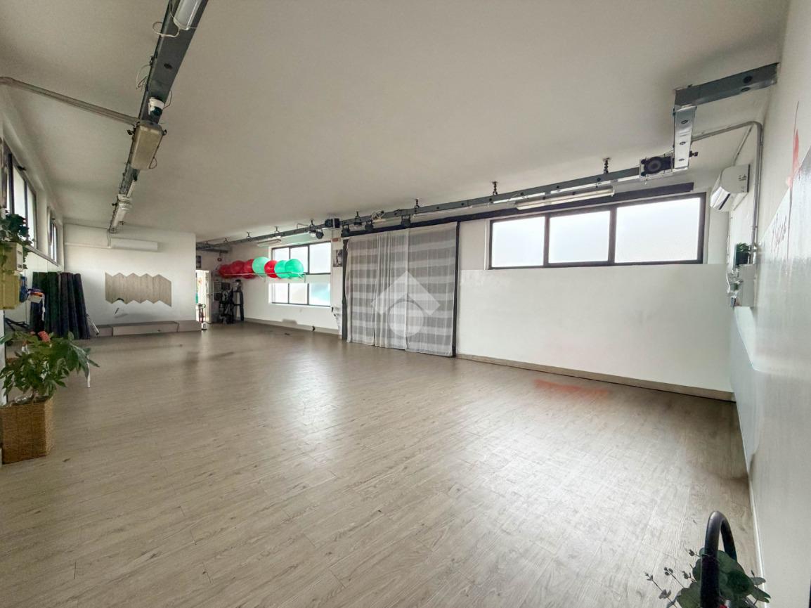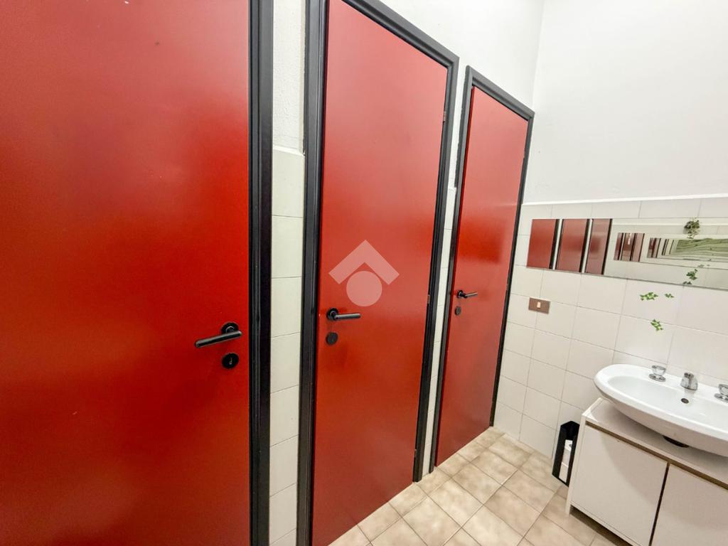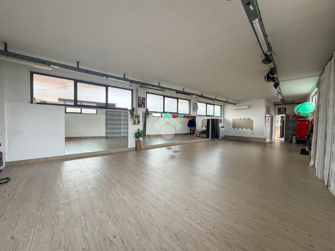 La struttura possiede due servizi igienici non a norma disabili. Presenta l’impianto di riscaldamento e condizionamento autonomo, l’impianto elettrico, l’impianto d’illuminazione, le uscite e le luci d’emergenza, la porta tagliafuoco e l’antincendio a idranti. La struttura dispone di un locale adibito a spogliatoio sito al piano terra e ha il tetto in eternit misto cemento.