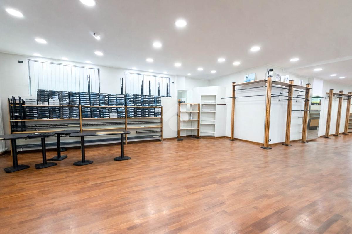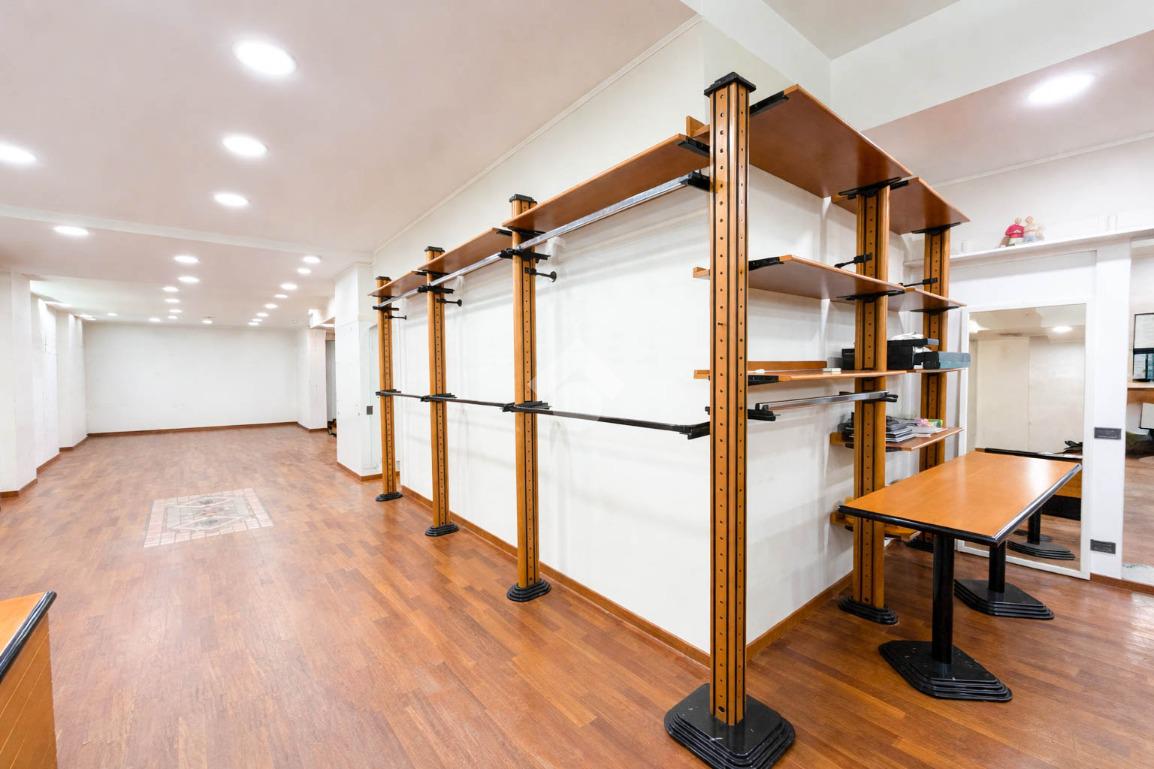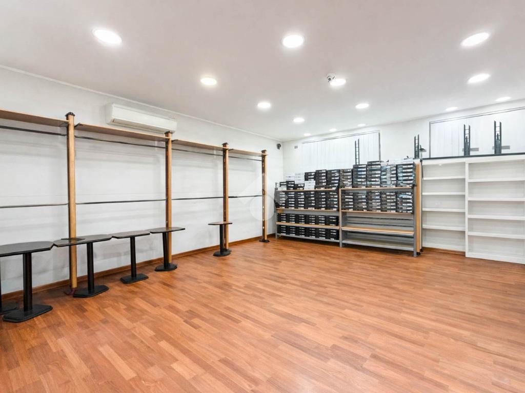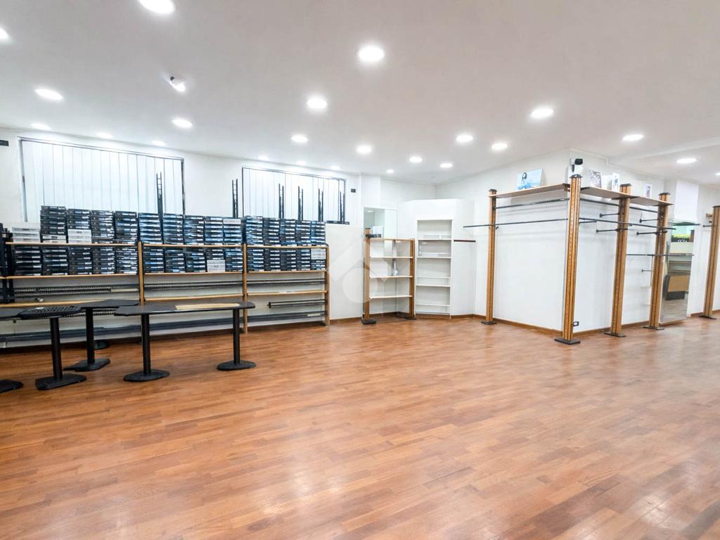 Il negozio misura circa 200 metri quadrati, attualmente si presenta in un unico locale e ha un servizio igienico non a norma disabili. La struttura ha un'altezza di circa 3,0 metri, ed è caratterizzata da una pavimentazione in parquet. L'immobile, controsoffittato, presenta l'impianto di riscaldamento e condizionamento autonomi, l’impianto elettrico e l’impianto d’illuminazione. La struttura è molto luminosa grazie alla presenza di nove ampie vetrine e alla sua posizione angolare. Il negozio è cablato e presenta il doppio ingresso.