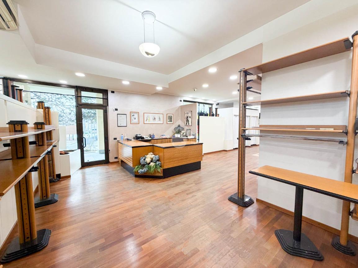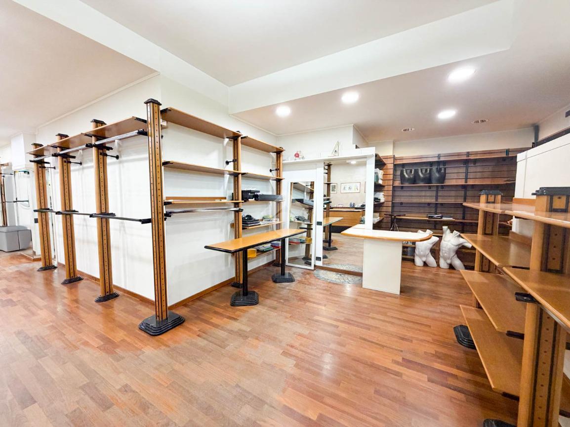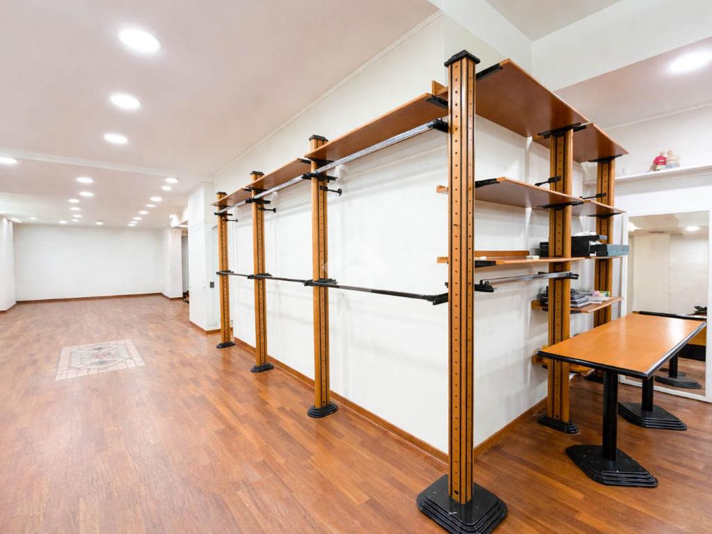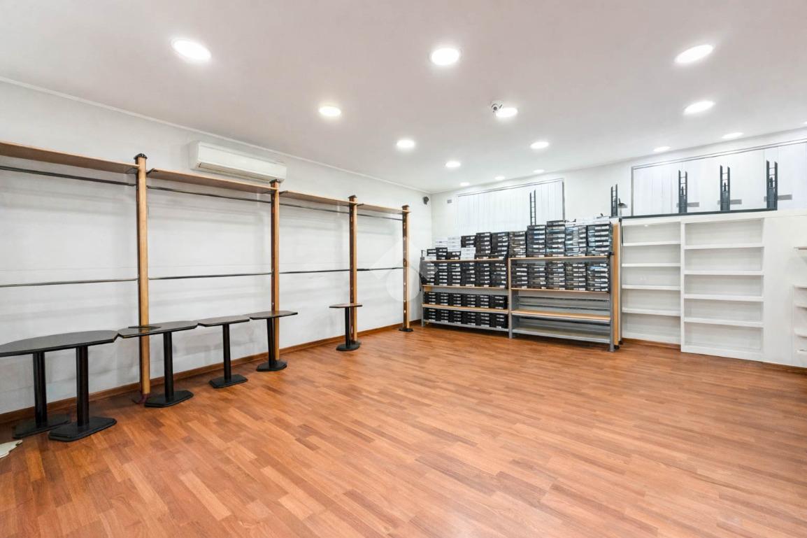Il negozio misura circa 200 metri quadrati, attualmente si presenta in un unico locale e ha un servizio igienico non a norma disabili. La struttura ha un'altezza di circa 3,0 metri, ed è caratterizzata da una pavimentazione in parquet. L'immobile, controsoffittato, presenta l'impianto di riscaldamento e condizionamento autonomi, l’impianto elettrico e l’impianto d’illuminazione. La struttura è molto luminosa grazie alla presenza di nove ampie vetrine e alla sua posizione angolare. Il negozio è cablato e presenta il doppio ingresso.