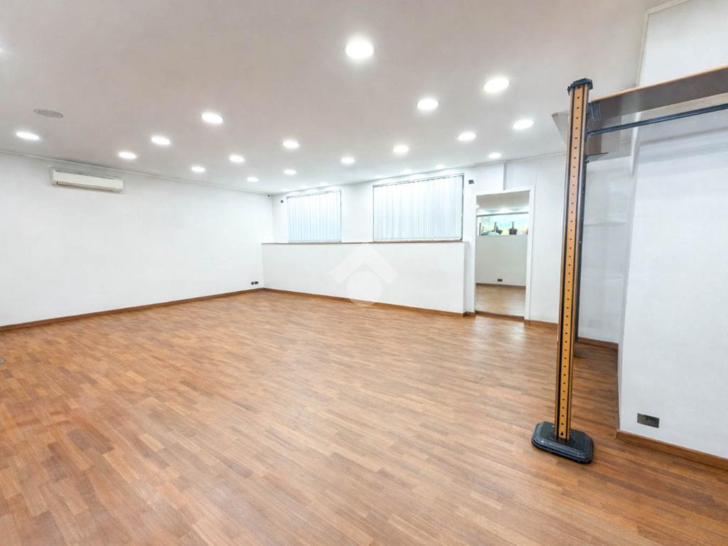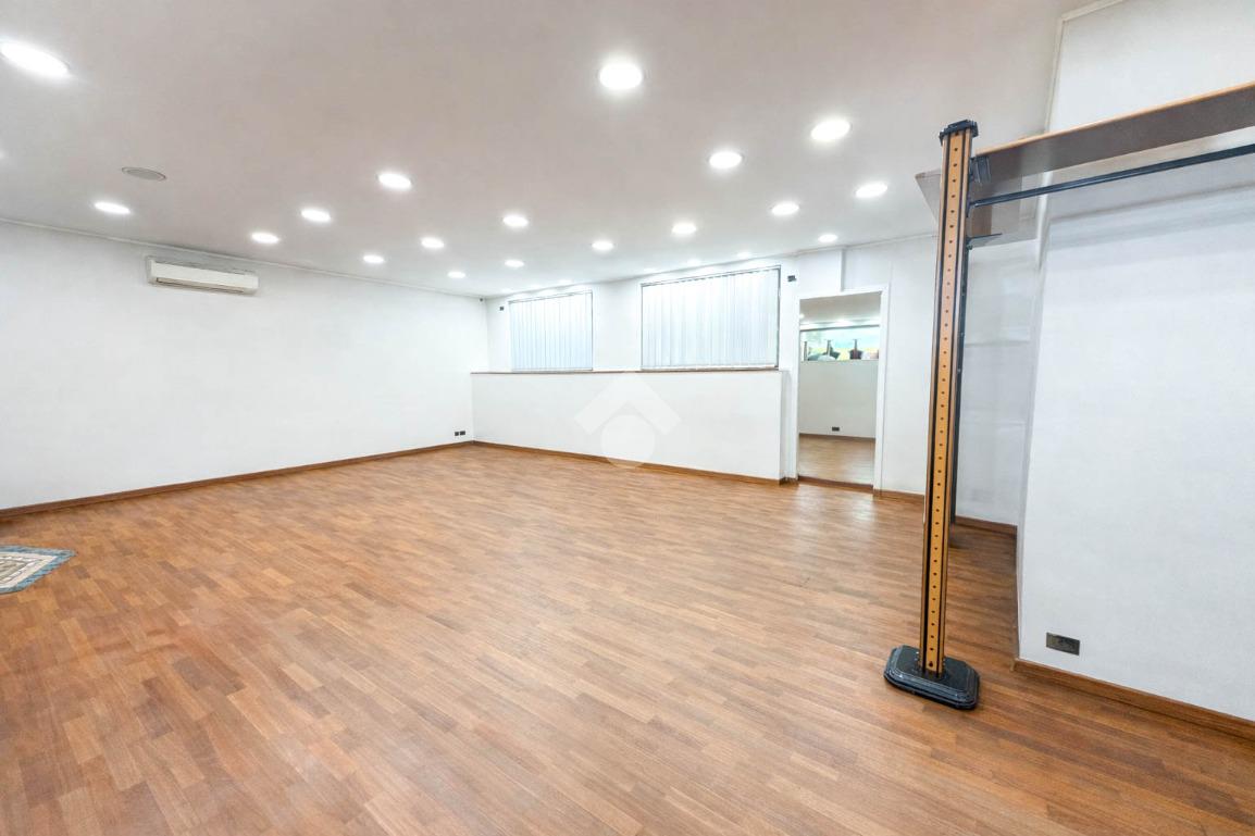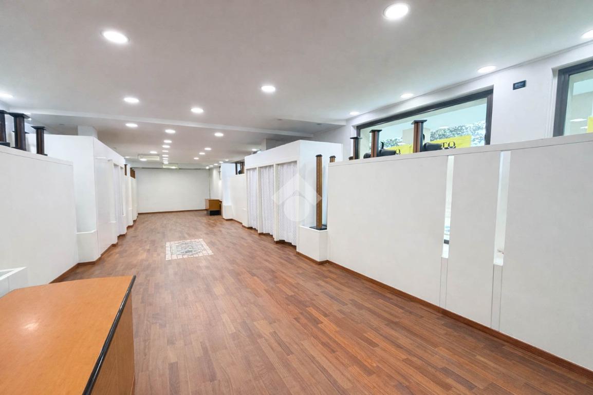 Proponiamo in locazione un negozio con superficie complessiva di circa 200 metri quadrati disposti al piano terra di una struttura condominiale che si sviluppa su tre livelli.