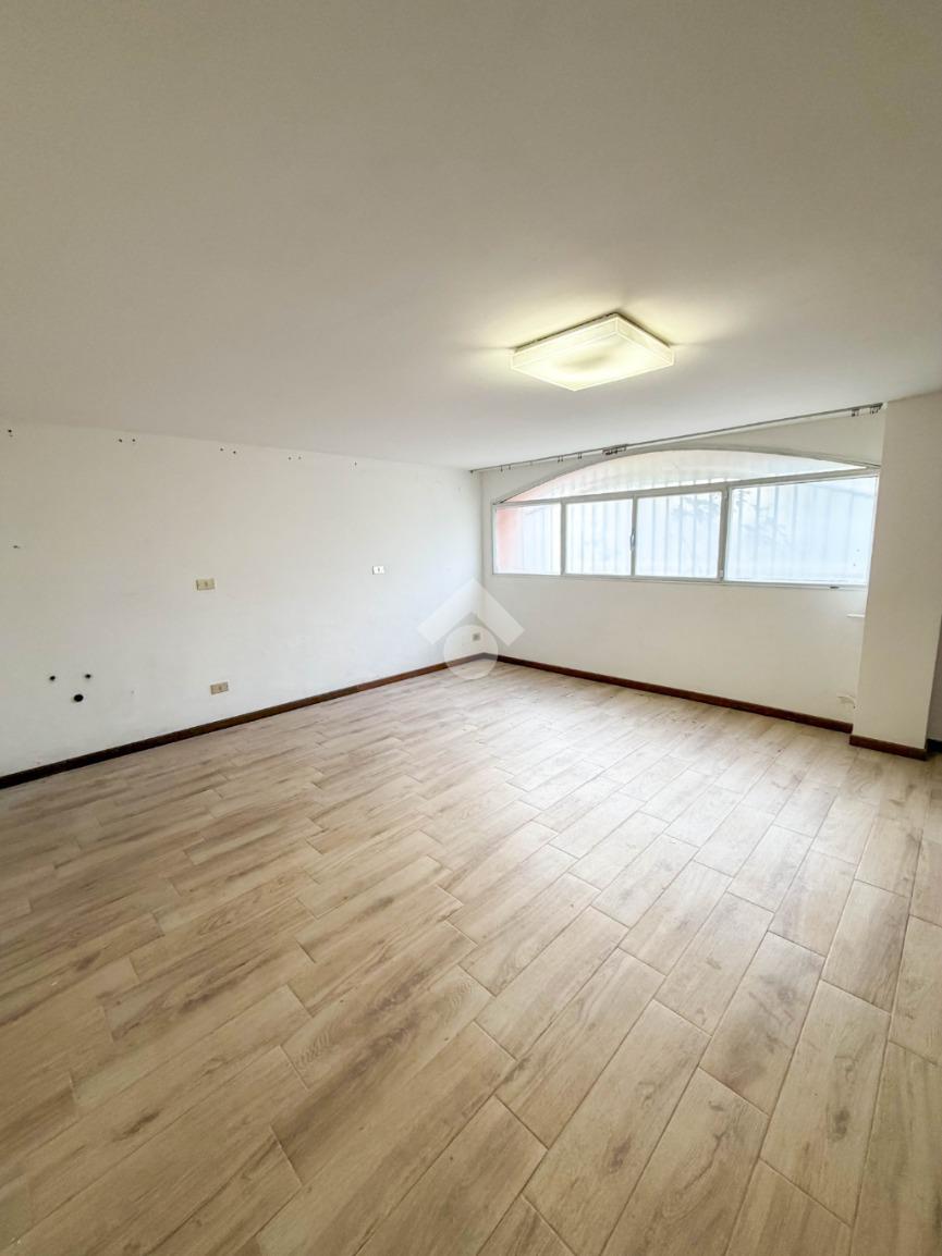 L’ufficio misura circa 105 metri quadrati, si suddivide in quattro locali e presenta due servizi igienici con doccia non a norma disabili. L’immobile ha un'altezza di circa 2,10 metri ed è caratterizzata da una pavimentazione in gres effetto legno. La struttura ha l’impianto elettrico, l’impianto d’illuminazione e la porta blindata.