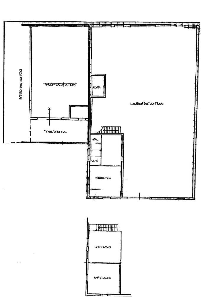 Il lotto proposto in affitto è composto da un capannone con superficie di circa 550 metri quadrati al piano terra con circa 100 metri quadrati totali di uffici disposti sia al piano terra che al piano primo. Completano la proprietà circa 250 metri quadrarti di area esterna.