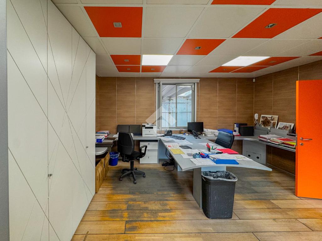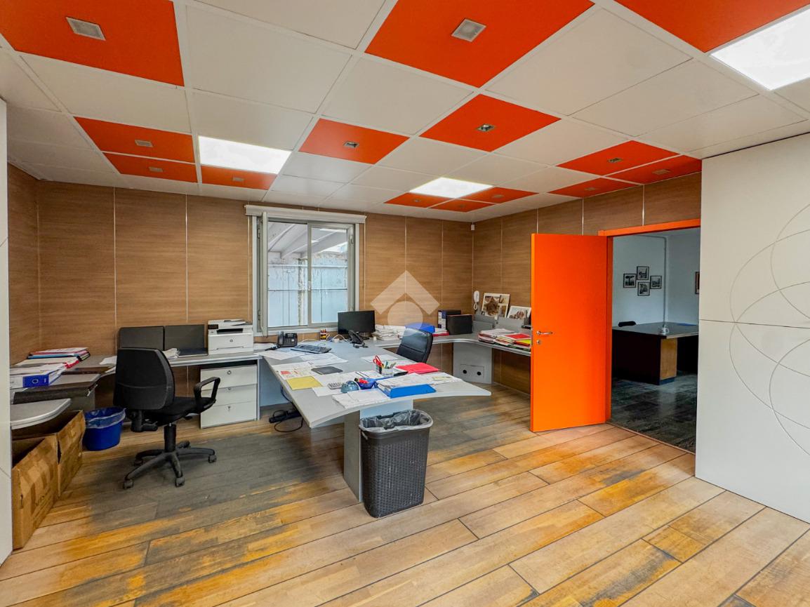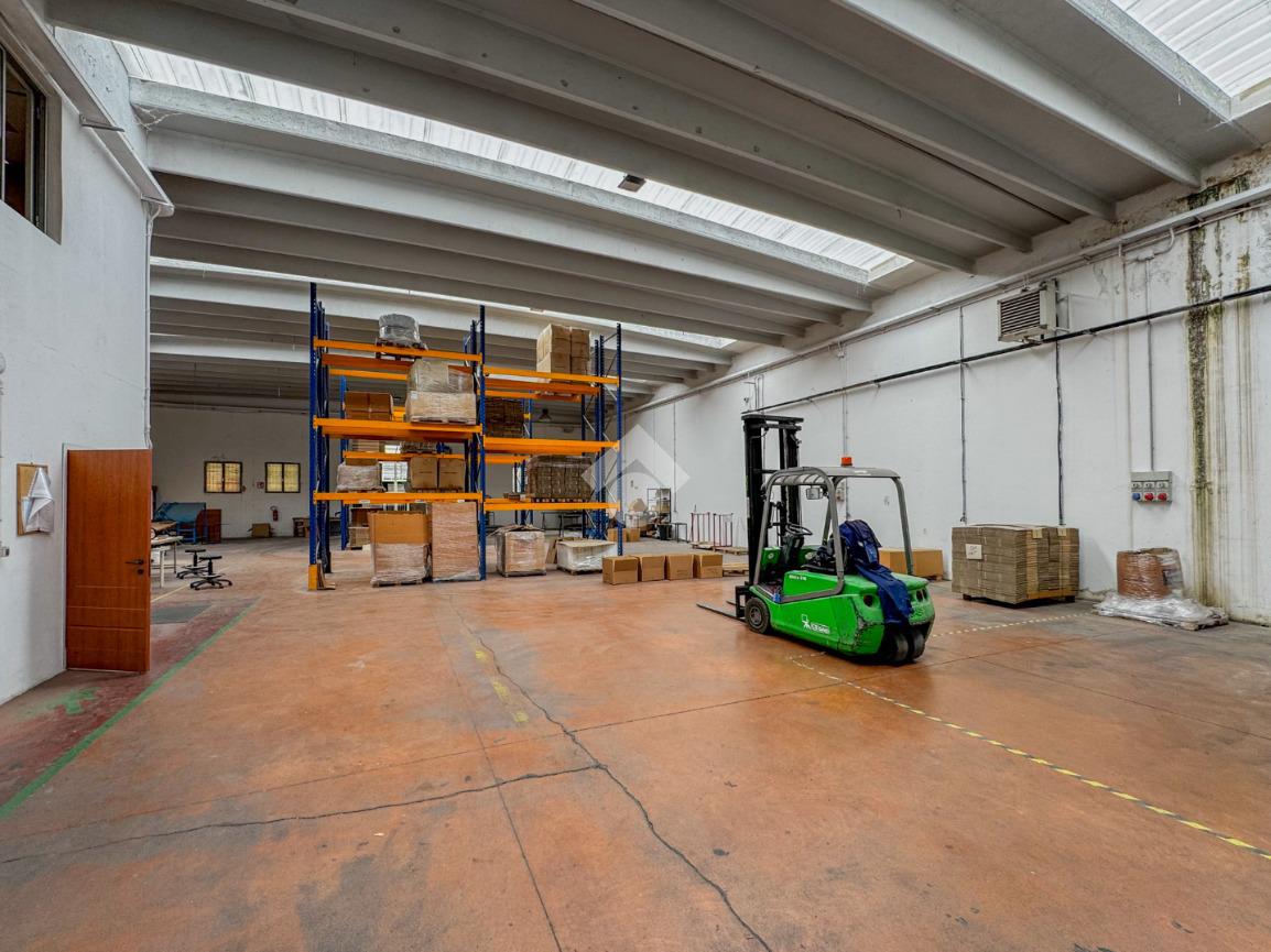Il capannone misura circa 550 metri quadrati, è disposto al piano terra e presenta due servizi igienici non a norma disabili con spogliatoi. La struttura si suddivide in cinque locali, si sviluppa lungo un'unica campata, ha un'altezza di circa 6,00 metri ed è munito di un portone alto 4,00 metri e un cancello largo 5,00 metri. Presenta l'impianto di riscaldamento sia nel capannone che negli uffici, l’impianto di condizionamento solo nell’area degli uffici, oltre agli impianti elettrici e di illuminazione. Il capannone è dotato di antincendio ad idranti e di luci di emergenza. La proprietà è recintata.